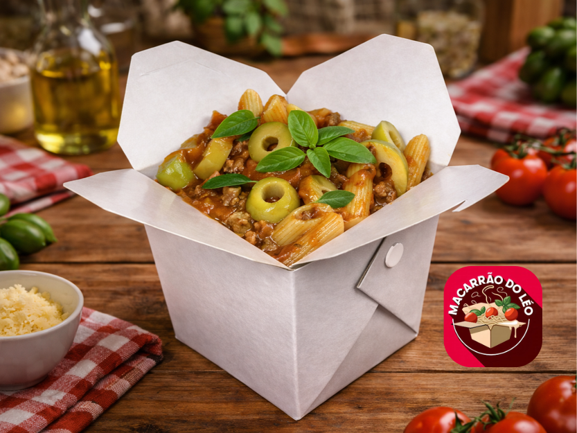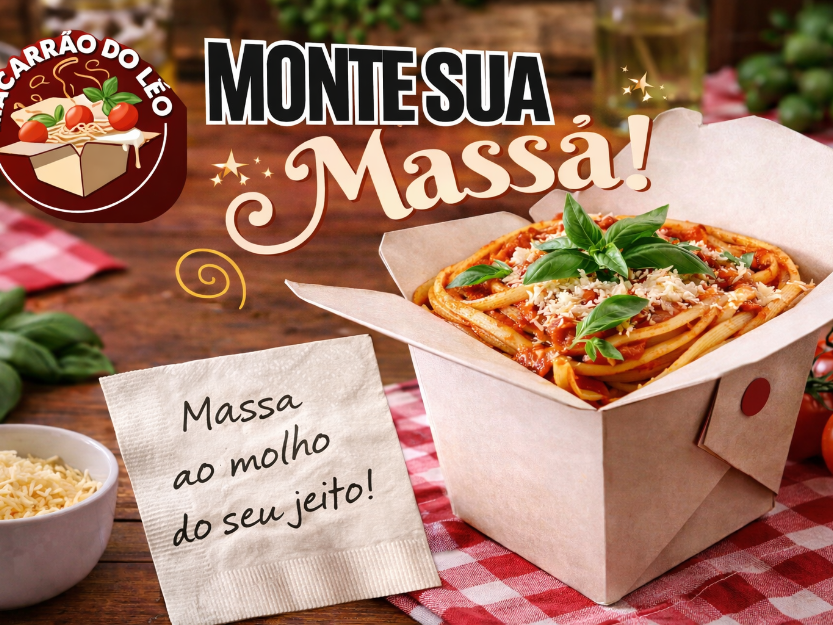 Monte sua massa do seu jeito. Escolha o tamanho, a massa, o molho, a proteína e adicione extras.